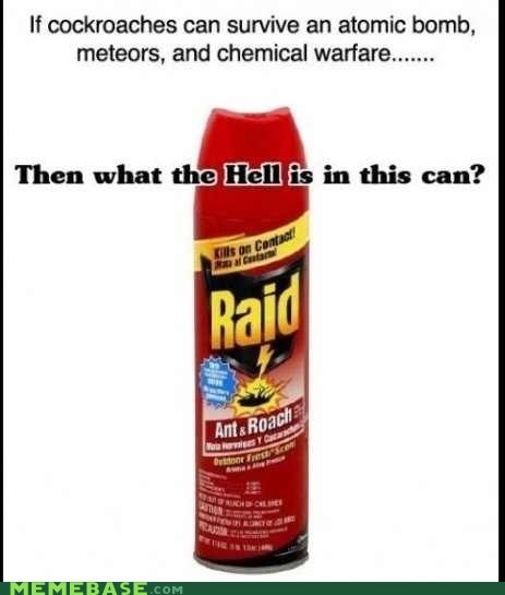 Raid Ant Roach Killer 26 kills on contact and keeps killing with residual action for up to four weeks. THIS MEME IS SPONSORED BY RAID. Roaches and carpenter ants.