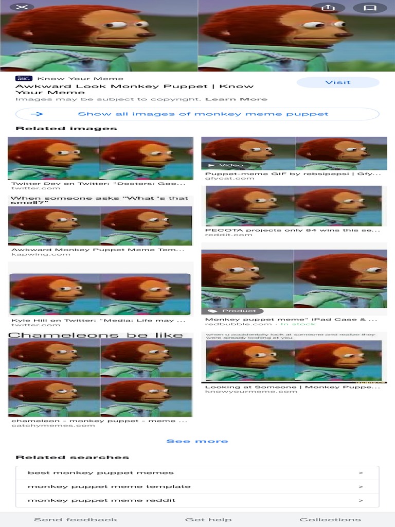 Monkey Puppet Meme Blank It will be published if it complies with the content rules and our moderators approve it. There are several images taken of the same puppet that are used as memes but generally they all show the puppet either looking shocked nervous or sad. Insanely fast mobile-friendly meme generator.