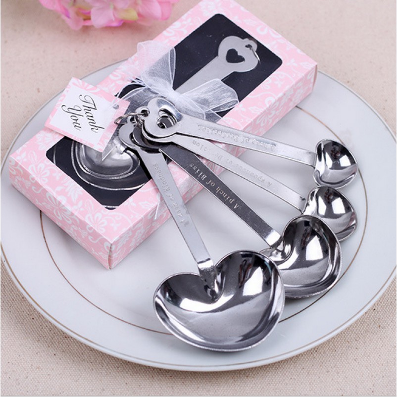 Set of four heart-shaped measuring spoons wonderfully crafted in durable stainless steel - each an accurate measure of either a tablespoon teaspoon5 teaspoon or 25 teaspoon. They are going to be the perfect party favor for the baby shower and I know our guests are going to be pleasantly surprised when they get them. These are the cutest and most practicaluseful baby shower favors I have ever seen. 30 Packs Love Design Heart Shape Measuring Spoon Set for Bridal Shower Favors Wedding FavorsGifts Decorations and Souvenirs for Guests with Individual Gift Package 30 30 out of 5 stars 12 6898 68. 45 out of 5 stars. Earn 36 Dollars per itemset. Only 9 left in stock - order soon.