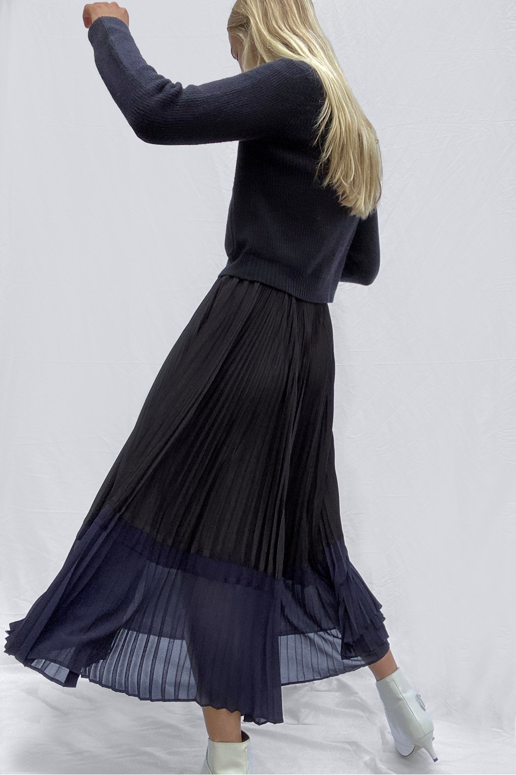 Its easy-wearing silhouette consists of a midi length pleated design and elasticated waistband.