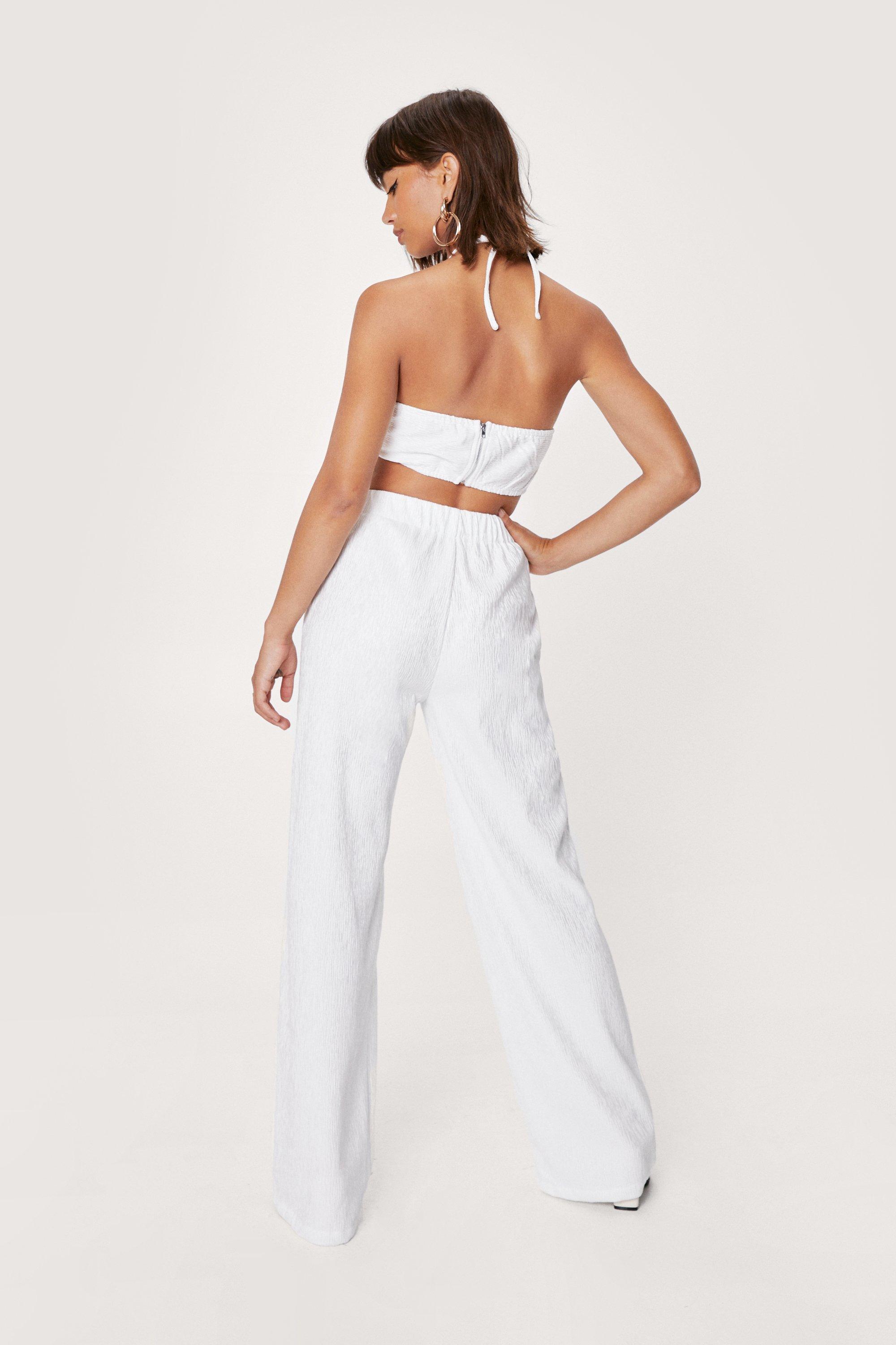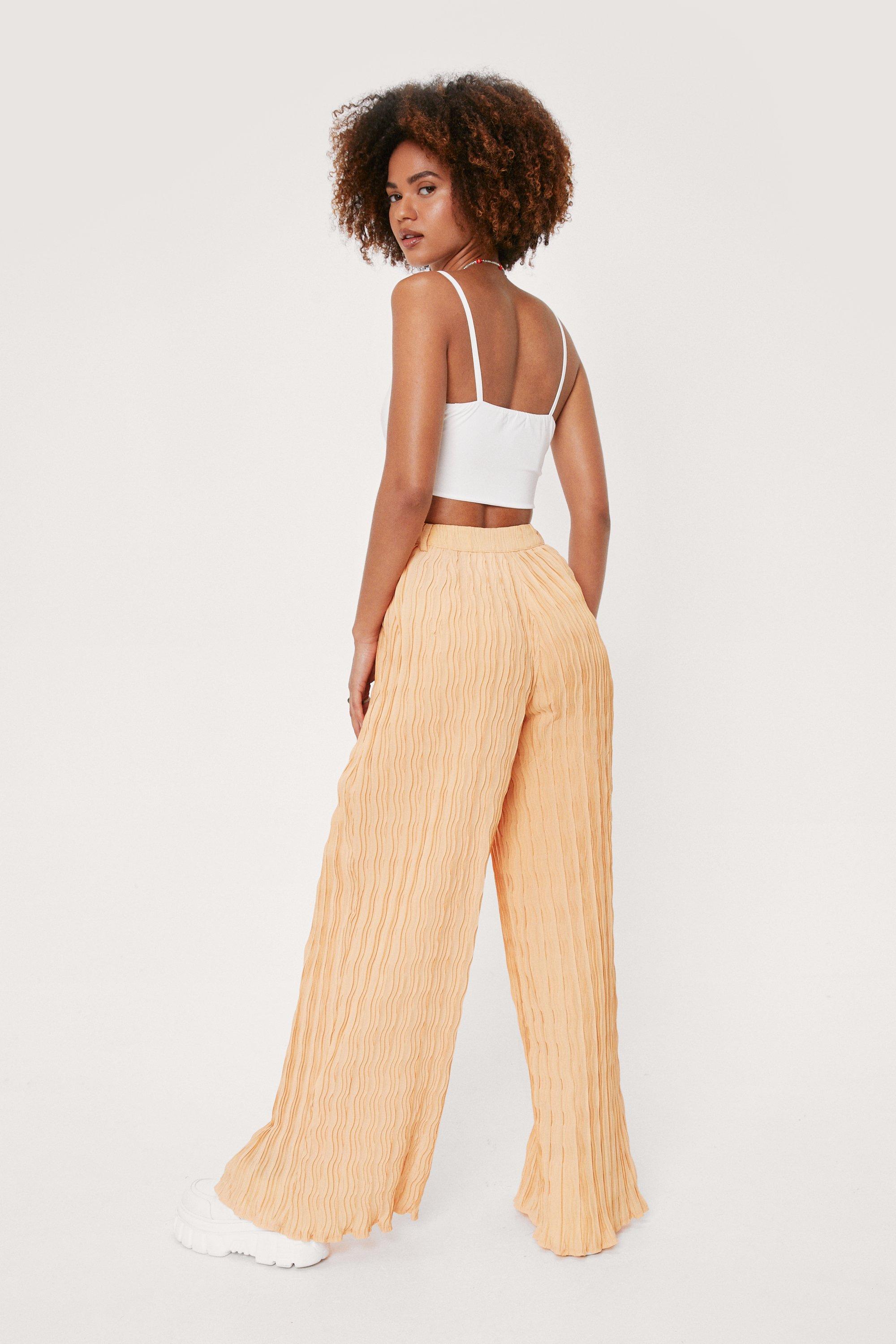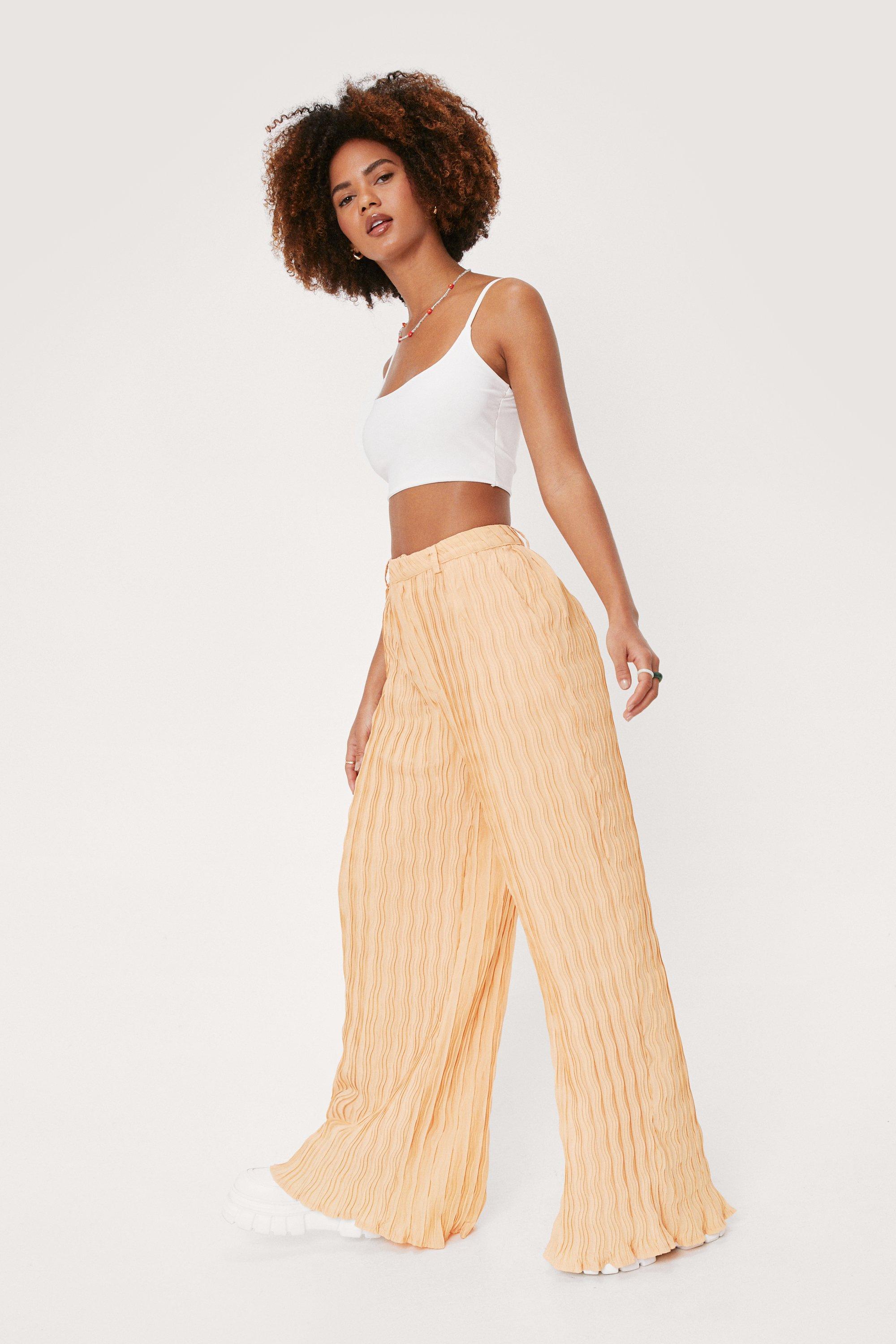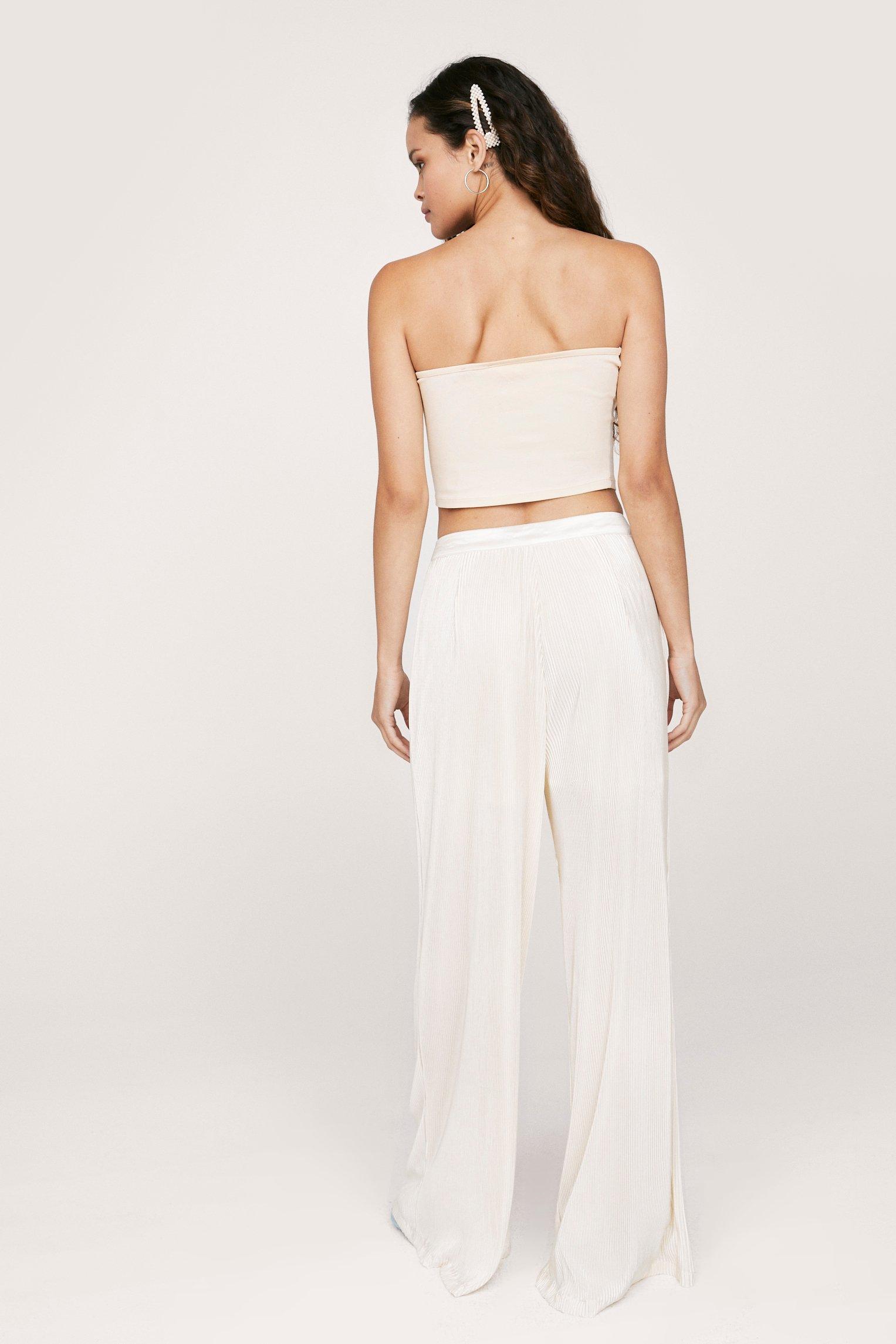 Buy Nasty Gal Womens White High Waisted Plisse Wide Leg Pants.