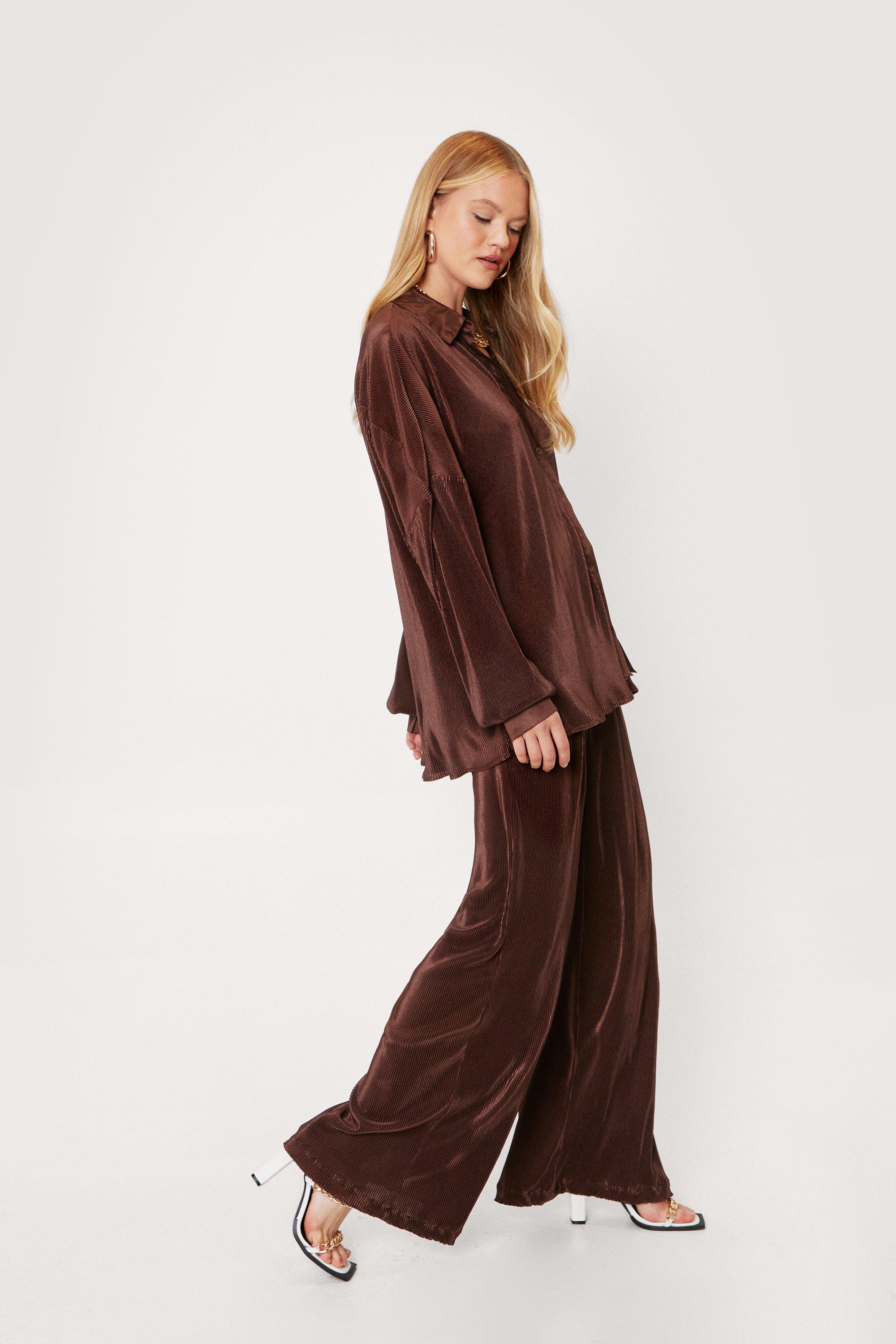 High waisted plisse wide leg pants. Team with the matching top and barely-there heels for a night with the dolls. Plisse youll be mine. Lyst - Your world of fashion.