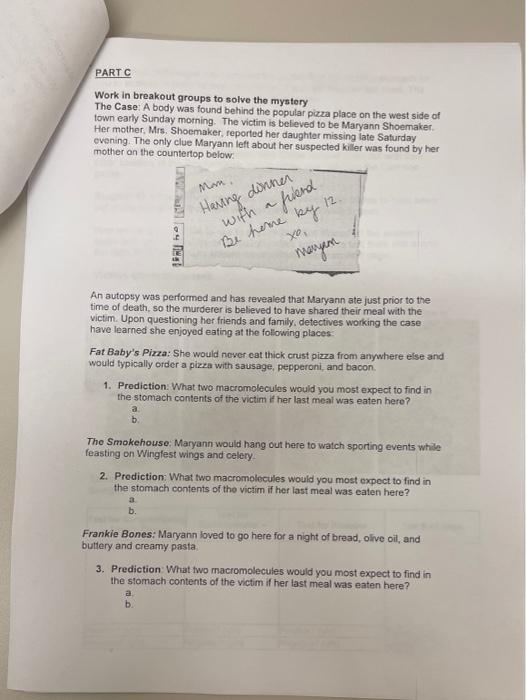 Murder and a meal lab answer key is available in our digital library an online access to it is set as public so you can get it instantly. Murder and a Meal Lab Activity The Case A murder has occurred right here in our peaceful little town of Corona Ca. So he could travel back in time bye specific items to sell them as antiques in his time. By storing or accessing murder and a meal lab answer key Books on your computer your have found the answers. Murder and a Meal. Many of these molecules are long polymers and thus collectively. Murder and a meal lab answer key Created Date. We have been learning about the 4 major molecules that make up living organisms carbohydrates protein nucleic acids and lipids. A murder has occurred right here in our peaceful little town of Eastvale California.